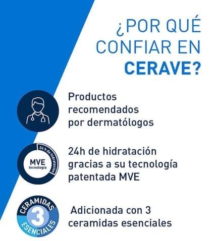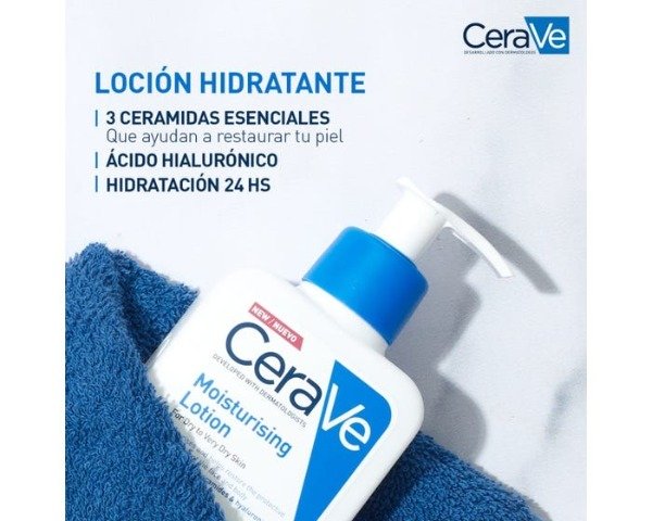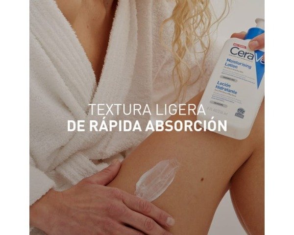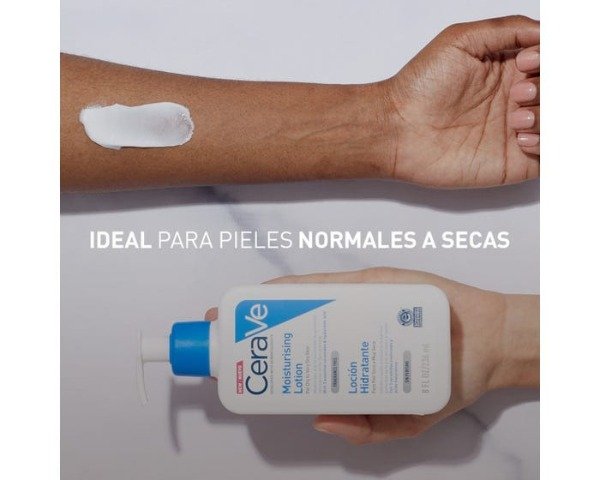 Hidrata y ayuda a reparar la barrera protectora de la piel. La loción hidratante corporal de Cerave, indicada para pieles normales a secas, hidrata y ayuda a restaurar la barrera protectora de la piel de rostro y cuerpo. Potenciada por su fórmula con 3 ceramidas esenciales. Brinda hidratación profunda tanto al cuerpo como el rostro
