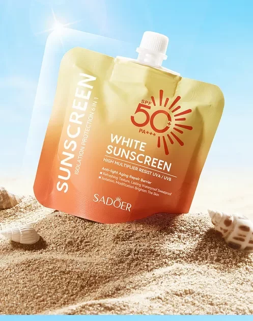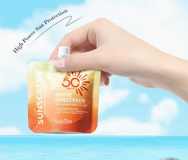 El protector solar SADOER White Sunscreen combina una alta protección solar (SPF 50+ PA+++) con una fórmula ligera, hidratante y de rápida absorción. Diseñado para cuidar tu piel frente a los rayos UVA y UVB, la contaminación y el fotoenvejecimiento, dejando un acabado suave, luminoso y sin sensación grasosa.