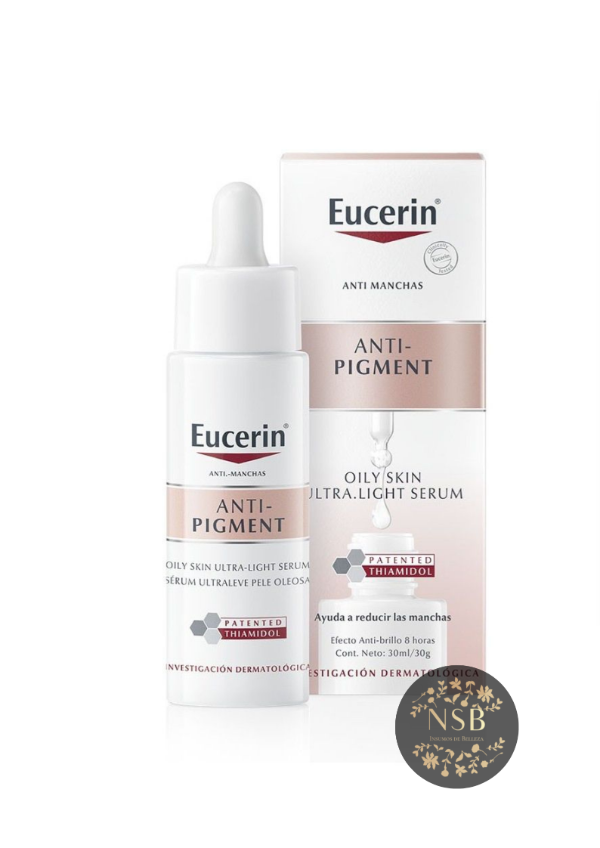 El Serum facial Ultra-Light Eucerin ANTI-PIGMENT ayuda a reducir las manchas de pigmentación y previene la aparición de nuevas manchas ocasionadas por el sol. Su fórmula combina Ácido Hialurónico y Thiamidol, ingredientes que hidratan intensamente la piel, dejándola más suave y flexible. Además, tiene una textura ultraligera de rápida absorción y aumenta la luminosidad de la piel.