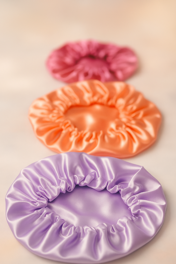 Cofias confeccionadas con satén de alta calidad, suave y brillante, ideales para cuidar tu cabello mientras dormís o te relajás. Su textura sedosa reduce la fricción y el frizz, ayudando a mantener tu peinado impecable y tu cabello más saludable. Disponibles en elegantes tonos lila, coral y fucsia.