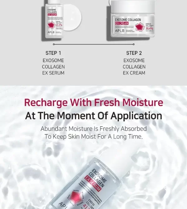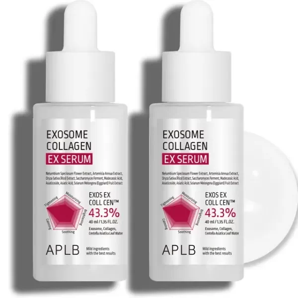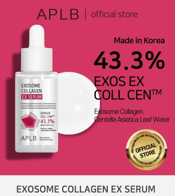 Un suero concentrado con 43.3% de EXOS EX COLL CEN™, combinación potente de exosomas, colágeno y agua de hoja de centella asiática, diseñado para rejuvenecer, reparar y mejorar visiblemente la firmeza de la piel.