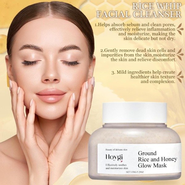 💫 Hoygi Ground Rice & Honey Glow Mask – La fusión perfecta entre la naturaleza y la ciencia para una piel luminosa, suave y saludable. ¡Sentí la diferencia desde el primer uso! 🌼